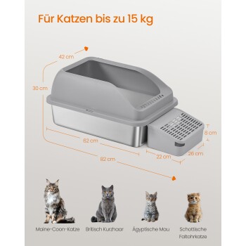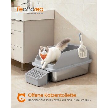 FEANDREA Katzentoilette, Edelstahl,schiefergrau