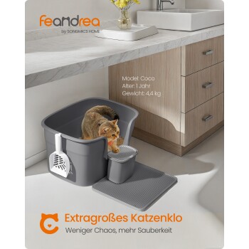 FEANDREA Katzentoilette für große Katzen mit hohen Seitenwänden dunkelgrau