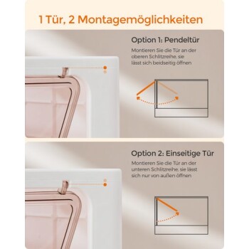 [1 Tür, 2 Konfigurationen] Die Tür lässt sich so einstellen, dass sie nur einseitig aufgeht und die obere Öffnung als Ausgang genutzt werden kann. Auch ein beidseitiges Öffnen der Tür lässt sich einstellen – je nach Bedarf. Wenn Ihre Katze ein Anfänger ist, können Sie die Tür auch entfernen