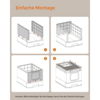 - Kinderleichte Montage: In nur 5 Minuten ist das Katzenklo fertig aufgebaut.