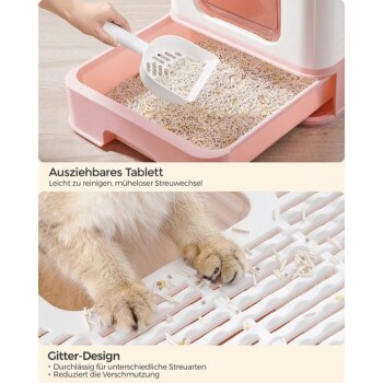 [Weniger Schmutz] Das Gitter-Design oben verringert die Spurenbildung und lässt die Streu zurück in die Box fallen. Dadurch wird die Spurenbildung im Haus reduziert und Ihr Zuhause bleibt sauber