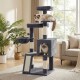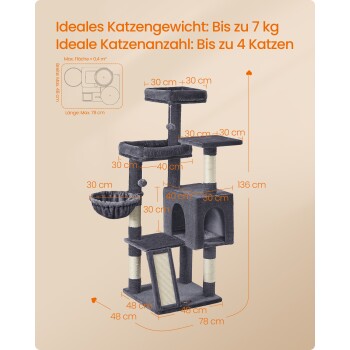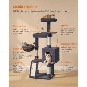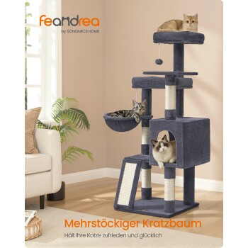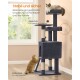 FEANDREA Kletterbaum mehrstufig, mit Rampe, Kratzsäulen, 3 Plattformen,136 cm dunkelgrau