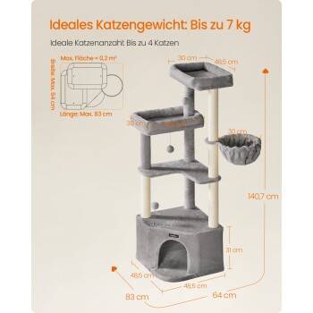 - 140,7 cm hoch: Perfekt für Katzen, die gerne auf hohe Plätze klettern und die Umgebung beobachten.