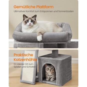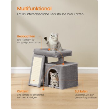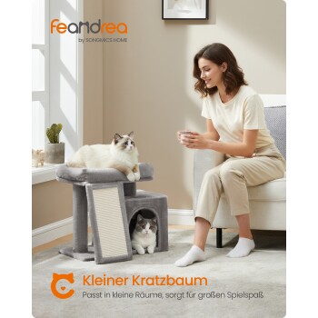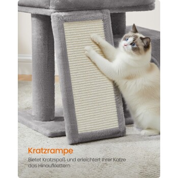 FEANDREA Kratzbaum, Katzenbaum mit Kratzrampe und Plattform, Katzenkratzbaum mit Höhle hellgrau