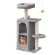 FEANDREA Kratzbaum mit 2 Höhlen, für Mehrkatzenhaushalte hellgrau