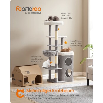 FEANDREA Kratzbaum zweistöckige Katzenhöhlen hellgrau