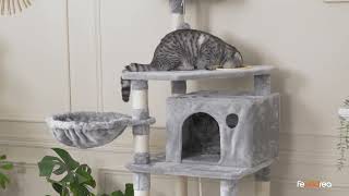 Dieser Kratzbaum bietet so viel Platz! Zwischen Liegemulde, Hängematte, Kuschelhöhle und zahlreichen Plattformen findet sicherlich jede Ihrer Samtpfoten ihren Lieblingsort