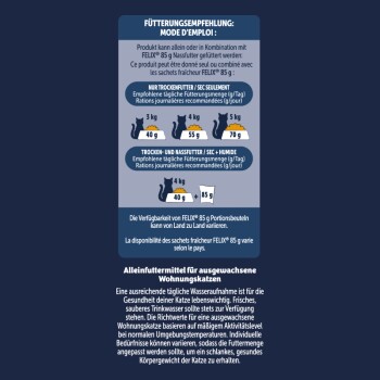 ***Ein belielibiger Portionsbeutel Felix für ausgewachsene Katzen (85g).| Gewicht des Tieres | Futtermenge pro Tag |