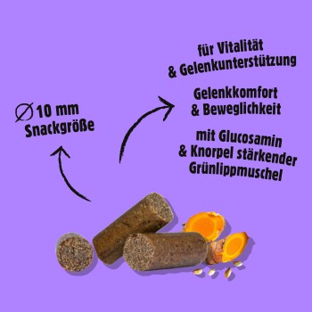 Ob beim Training oder als kleine Belohnung zwischendurch – du kannst sicher sein, dass du ihm nicht nur eine leckere Freude bereitest, sondern auch etwas Gutes für seine Gelenke tust!