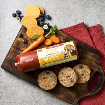 Fleischeslust Nassfutter Hund Adult Futterbox Geflügel, Heidelbeere, Süßkartoffel & Kamille 6x800 g