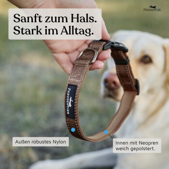 Freudentier Hundehalsband, leicht & komfortabel, Clyde Kollektion braun M