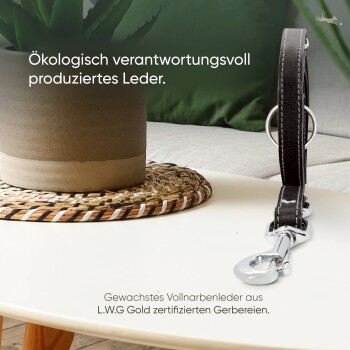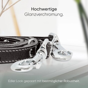 Freudentier Hundeleine aus zertifiziertem Leder 2m, verstellbar schwarz 2 cm