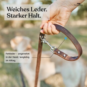 Freudentier Hundeleine aus zertifiziertem Leder 2m, verstellbare Führleine, Alsterufer Kollektion braun 1,6 cm