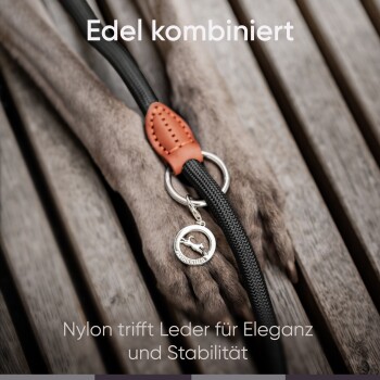 - SICHERHEIT, DIE GUT AUSSIEHT: 11 mm starkes, reißfestes Nylon, kombiniert mit edlen Lederelementen – für Hundemenschen, die maximale Kontrolle wollen, ohne auf Stil zu verzichten.