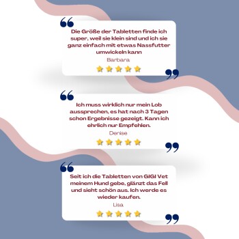 Antwort: Große Hunde bringen mehr Gewicht auf ihre Gelenke – dadurch sind Knorpel, Bänder und Knochen deutlich stärker belastet. Das kann schon in jüngeren Jahren zu Steifheit, vermindertem Bewegungsdrang oder Schmerzen führen. GIGI VET Große Hunde Gelenke & Knochen liefert genau die Nährstoffe, die große Hunde benötigen, um ihre Gelenke stabil, beweglich und gesund zu halten.