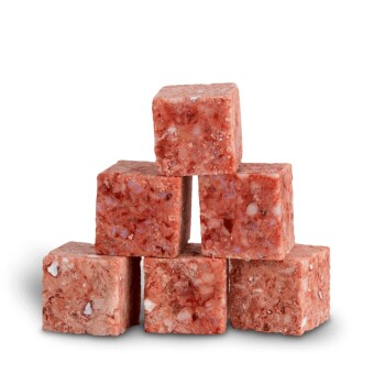 Der Knochenwürfel aus fein zerkleinerten Brustknochen vom Rind eignet sich besonders für sehr kleine Hunde, Junioren und Senioren. Denn diese schaffen es oft nicht einen harten Knochen zu zerteilen und komplett zu fressen. Unsere Knochenwürfel sind durch ihre fein zerkleinerte Struktur gut verdaulich und spenden lebenswichtige Nährstoffe, wie z.B. Calcium und Phosphor für einen gesunden Knochenbau. Die Rinderbrustknochen werden feinst zerkleinert in große Blöcke gefroren und dann in Würfel geschnitten.