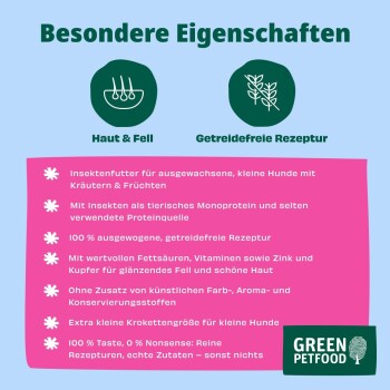 - Das leicht verdauliche Trockenfutter mit Insektenprotein für ausgewachsene, kleine Hunde
