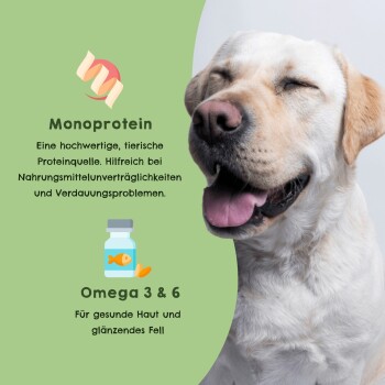Füttern Sie täglich pro 5 kg Körpergewicht ca. 200 g. Diese Empfehlung ist ein Richtwert. Der individuelle Bedarf richtet sich nach Rasse, Aktivität, Alter und Haltungsbedingungen. Bitte zimmerwarm füttern und immer ausreichend frisches Trinkwasser bereitstellen.