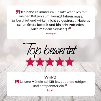 Das Ruhewunder in die Transportbox oder auf das Halsband sprühen und den angenehmen Duft überallhin mitnehmen!