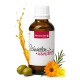 Calendulaöl wird aus der Blüte der Ringelblume gewonnen. Die Ringelblume ist als Heilpflanze bekannt und schon lange bewährt. Sie wird wegen ihrer wundheilenden Eigenschaften geschätzt. Ihre Wirkung gegen Bakterien wurde in Studien bestätigt. Gleichzeitig kann sie den Feuchtigkeitshaushalt der Haut unterstützen und verbessern.