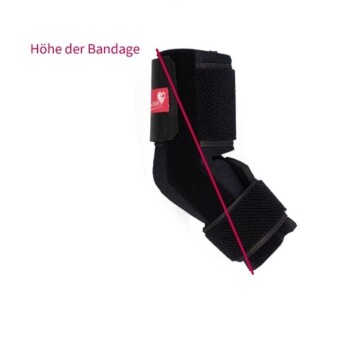 - Die Bandage kann so lange getragen werden, wie es der Therapieverlauf verlangt. In der Ruhephase solltest du sie jedoch ablegen, damit Luft an die Haut gelangen kann.