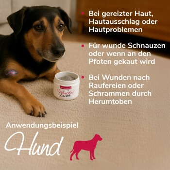 Der Wund(er)puder ist ein sanfter, natürlicher Puder, der empfindliche, gereizte oder wunde Hautbereiche beruhigt. Nutzen Sie es daher auch zur Unterstützung der Wundversorgung, um die Wundheilung bei Ihrem Pferd, Ihrem Hund oder Ihrer Katze zu fördern. Auch zur Hautpflege bei Hautproblemen oder Hautausschlag ist das Wund(er)puder gut geeignet. Es besteht aus Zeolith, einem 100 % natürlichen Mineral vulkanischen Ursprungs. Das Wund(er)puder aus 100% natürlichem, reinem Zeolith brennt und juckt nicht.