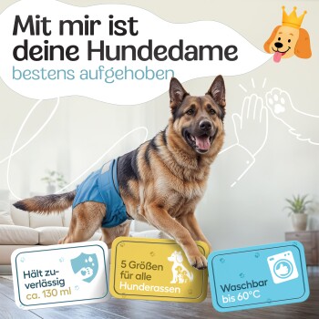 HUND IST KÖNIG Windeln für Hündinnen, saugstarke Windeln, 3-Fach justierbar für festen Sitz blau L