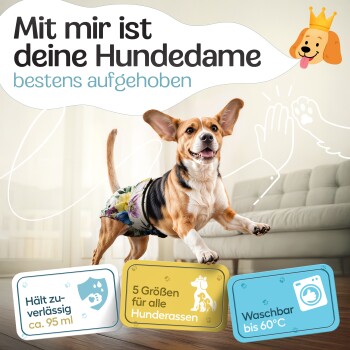 HUND IST KÖNIG Windeln für Hündinnen, saugstarke Windeln, 3-Fach justierbar für festen Sitz weiß/ bunt S