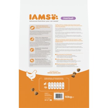- IAMS für Vitalität Haarballen mit frischem Huhn für ausgewachsene und ältere Katzen ist ein 100 % vollwertiges und ausgewogenes Alleinfuttermittel, welches die gesunde Vitalität Ihrer Katze unterstützt.