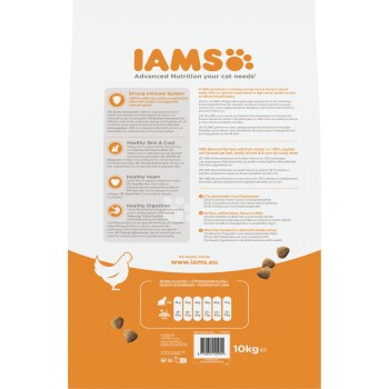 - IAMS für Vitalität mit frischem Huhn für ausgewachsene Katzen ist ein 100 % vollwertiges und ausgewogenes Alleinfuttermittel, das die gesunde Vitalität Ihrer Katze unterstützt.