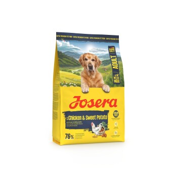 Zusammensetzunggetrocknetes Geflügelprotein 26,5 % (davon Huhn 40,0 %); Erbsenmehl; getrocknete Süßkartoffel 20 %; Geflügelfett; Rübenfaser; Johannisbrotmehl; hydrolysiertes Geflügelprotein; Hefe; Mineralstoffe; Apfelfaser; gemahlene Chicorée-Wurzel (natürliche Quelle von Inulin); getrocknetes Protein der neuseeländischen Grünlippmuschel (Perna canaliculus)