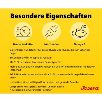 Zusammensetzunggetrocknetes Geflügelprotein 29,0 % (davon Huhn 40,0 %); Reis (24%); Vollkornmais; Geflügelfett; Pflanzenfaser; Rübenfaser; hydrolysiertes Geflügelprotein; Mineralstoffe; Lachsöl (0,5%); Hefe; gemahlene Chicorée-Wurzel (natürliche Quelle von Inulin); getrocknetes Protein der neuseeländischen Grünlippmuschel (Perna canaliculus)
