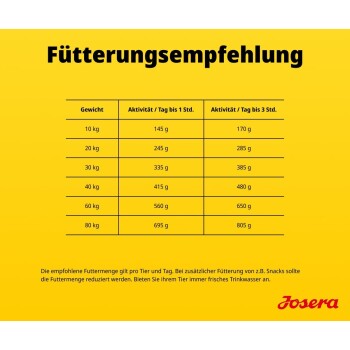 Analytische BestandteileProtein (26,0 %); Fettgehalt (14,0 %); Rohfaser (3,8 %); Rohasche (6,7 %); Calcium (1,40 %); Phosphor (0,95 %); Natrium (0,50 %); Magnesium (0,10 %); metabolisierbare Energie pro kg (15,3 MJ); metabolisierbare Energie pro kg (3.663 kcal)