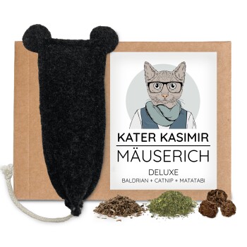 Kater Kasimir MÄUSERICH Deluxe - Die XL Spielmaus, handgemacht, aus echtem Wollfilz mit BIO-Katzenminze, BIO-Baldrian und Matatabi-Früchten