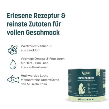KatKare Vital Snacks Immuno Bites - Knusperkissen für das Immunsystem Deiner Katze mit Superfoods, wertvollen Aminosäuren, Antioxidantien und Omega-3 2x150 g