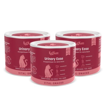 KatKare Vital Snacks Urinary Ease - Knusperkissen für das Harnwegssystem Deiner Katze mit blasenschützenden Wirkstoffen, Superfoods, Postbiotika und Omega-3 3x150 g
