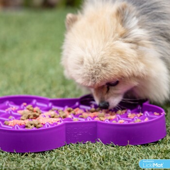 - LickiMat Mini Slodog, Slowfeeder Futternapf für Hunde zur Reduzierung von Langeweile und Angst; Perfekt für Futter, Leckerlis, Joghurt oder Erdnussbutter. ördert langsames gesundes Füttern – LickiMat Mini Slodog hilft dabei, das Füttern des Hundes von Sekunden auf viele Minuten zu steigern. Verbessert die Verdauung und reduziert Blähungen. Perfekt für Hunde kleiner Rassen. Kein Herunterschlucken mehr, nur noch kleine Bissen.