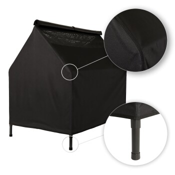 Ob auf dem Balkon, im Garten oder im Wohnzimmer – mit der Outdoor-Hundeliege mit Dach von lionto bietest du deinem Hund einen geschützten und bequemen Liegeplatz. Das Gestell ist erhöht und schützt damit zuverlässig vor Feuchtigkeit, Kälte und unliebsamen Insekten. Gleichzeitig sorgt das integrierte Netzgewebe im Dach für eine angenehme Luftzirkulation – besonders vorteilhaft bei sommerlichen Temperaturen.