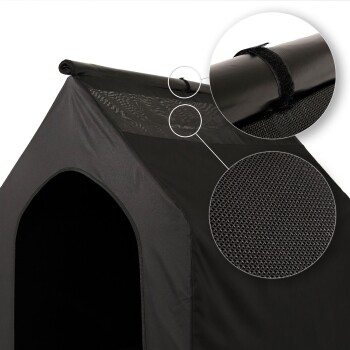 - Mit schattenspendendem Dach und luftdurchlässigem Netzgewebe