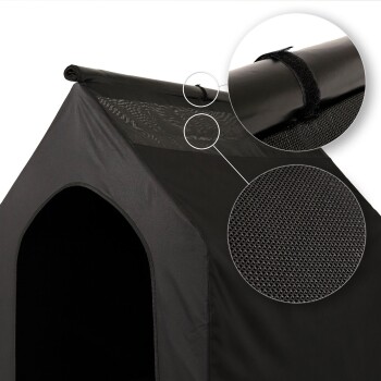 Ob auf dem Balkon, im Garten oder im Wohnzimmer – mit der Outdoor-Hundeliege mit Dach von lionto bietest du deinem Hund einen geschützten und bequemen Liegeplatz. Das Gestell ist erhöht und schützt damit zuverlässig vor Feuchtigkeit, Kälte und unliebsamen Insekten. Gleichzeitig sorgt das integrierte Netzgewebe im Dach für eine angenehme Luftzirkulation – besonders vorteilhaft bei sommerlichen Temperaturen.