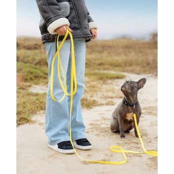 Diese strapazierfähige Schleppleine aus Nylon mit PVC-Beschichtung eignet sich ideal für Rückrufübungen, Hundetraining und kontrollierten Auslauf. Durch die leichte Ausführung und den kompakten Karabiner ist sie besonders gut für kleine bis mittelgroße Hunde geeignet. Eine atmungsaktive Transporttasche zur Aufbewahrung ist inklusive.