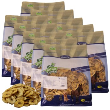 Für eine Vielzahl von Tieren geeignet: Getrocknete Bananen sind eine ideale Ergänzung für die Fütterung von Nagetieren, Ziervögeln, Pferden und pflanzenfressenden Reptilien. Beachten Sie bei der Fütterung immer die besonderen Ernährungsbedürfnisse oder Allergien Ihres Tieres und konsultieren Sie bei Unsicherheiten vorab Ihren Tierarzt.