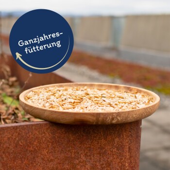 Ganzjährige Fütterung: Unser proteinreiches Fettfutter bietet die Möglichkeit zur Ganzjahresfütterung von Wildvögeln. Sie erfüllt die Bedürfnisse der Vögel unabhängig von der Jahreszeit und den jeweiligen Wetterbedingungen. Ob im Sommer, um Wildvögel bei der Aufzucht ihrer Jungen zu helfen, oder im Winter, um Vögeln eine zusätzliche Nahrungsquelle in kalten Zeiten zu bieten, unser Fettfutter ist das ganze Jahr über ideal geeignet.