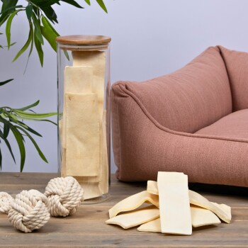Lyra Pet® Kausnacks bieten eine hochwertige und schmackhafte Ergänzung zur täglichen Ernährung Ihres Hundes, die speziell darauf abzielt, die Kauinstinkte zu befriedigen und gleichzeitig zur Zahngesundheit beizutragen. Unsere große Palette an Kausnacks zeichnet sich durch eine Vielfalt unterschiedlicher Kauartikel aus, die alle auf natürlichen Zutaten basieren und je nach Snack für Hunde unterschiedlicher Rassen und Größen geeignet sind.