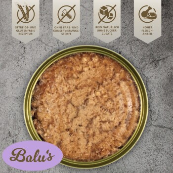 Mix aus 3 abwechslungsreichen Sorten:Ob Balu`s mit 68 % Huhn für Katzen mit empfindlichen Magen, Emily’s mit 26 % Huhn, 16 % Seelachs und Algen als wertvolle Proteinquelle oder Leo’s mit 65 % frischem Putenfleisch und der Zugabe von Möhren, die hochwertigen Inhaltsstoffe machen das Futter zu einem Leckerbissen, der frei von künstlichen Zusätzen wie Farbstoffen, Konservierungsmitteln oder beigefügtem Zucker ist.