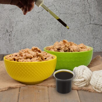 Ideale Nahrungsergänzung: Hanföl wird direkt über das Futter der Tiere gegeben. Egal ob fertiges Futter oder BARF, einfach die entsprechende Menge Hanföl über das Futter träufeln und gut untermischen. Aufgrund des milden, nussigen Geschmacks wird Hanföl von den meisten Hunden und Katzen sehr gut angenommen.