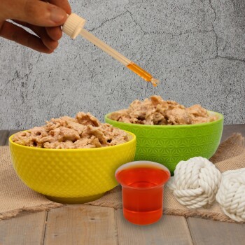Ideale Nahrungsergänzung: Lachsöl wird direkt über das Futter der Tiere gegeben. Egal ob fertiges Futter oder BARF, einfach die entsprechende Menge Lachsöl über das Futter träufeln und gut untermischen. Aufgrund des angenehmen Geschmacks wird Lachsöl von den meisten Hunden und Katzen sehr gut angenommen.