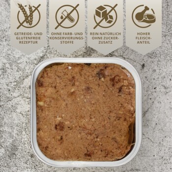 Ohne künstliche Zusätze: Luna’s Paté kommt ohne künstliche Farb- und Konservierungsstoffe oder Sojaproteine aus. So bleibt die Rezeptur besonders natürlich und bekömmlich – optimal für eine nährstoffreiche Ernährung Ihres Vierbeiners. Dank der cremigen, streichfähigen Konsistenz können zudem auch ältere Hunde oder mit Gebissproblemen das Futter mühelos genießen.