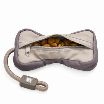 Unser Futterbeutel in praktischer Knochenform ist der perfekte Trainingspartner für motivierende Apportier- und Suchspiele.