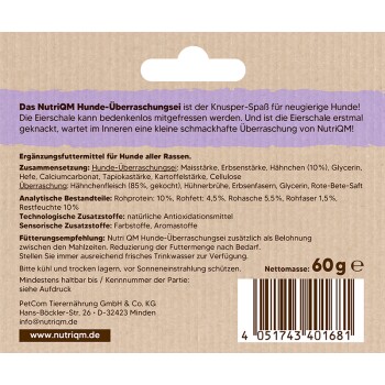 - Das NutriQM Hunde-Überraschungsei ist der Knusper-Spaß für neugierige Hunde!